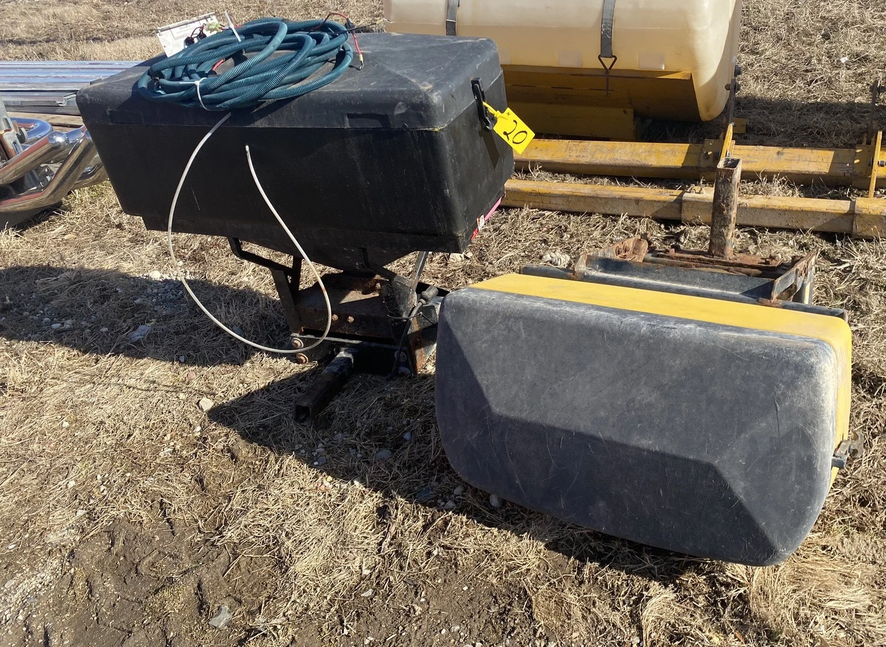 SPECIAL INTEREST: Poly Tank-210 Ga.; Two 2500 Ga. Poly Tanks; Front 6’ Blade for a Utility Tractor; Ten Pieces 30’ x 3’ Commercial Grade; Chrome Pipe Semi Bumpers; Aluminum Half Semi Bumpers; Aluminum Truck Tool Box; Ten 16 Foot Cattle Panels;