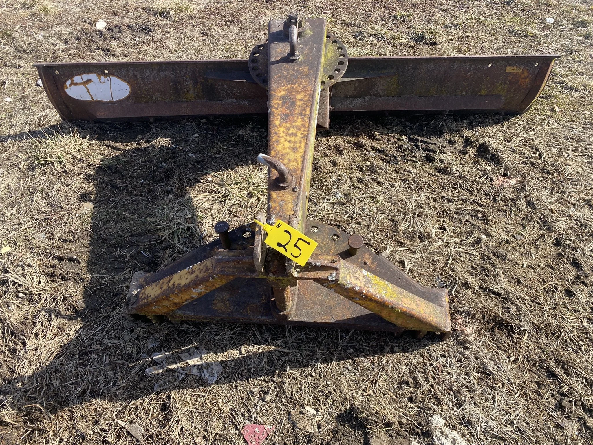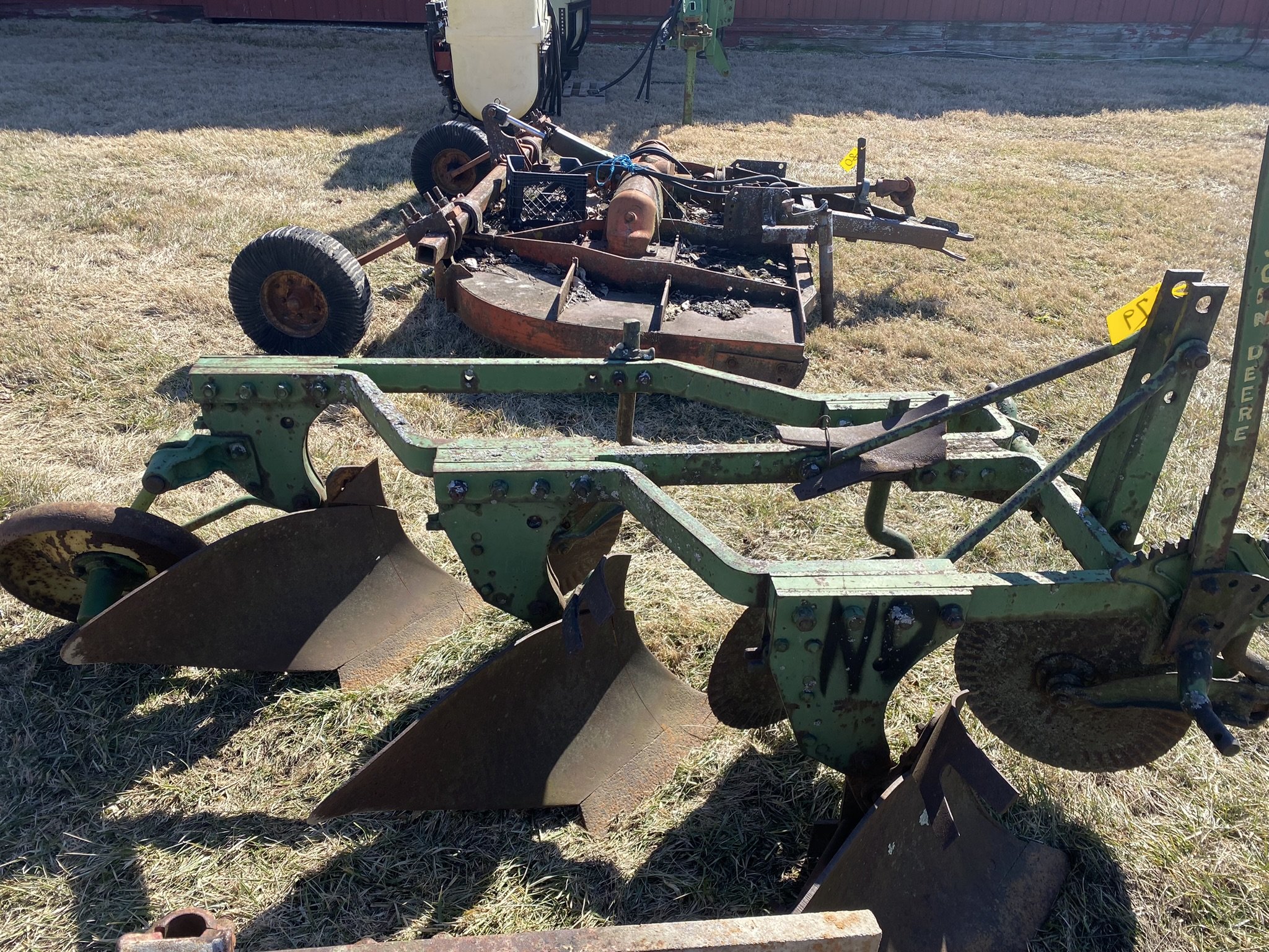 THREE PT. EQUIPMENT: Shaver Post Driver; Post Auger 12”; Allied 8420 7’ Snow Blower; Bushog 5’ Rotary Mower; IMC 5’ Rotary Mower; Woods M5-3 5’ Rotary Mower; JD model 813 Three Bottom Plow; JD 4 Bottom Plow; Dearborn Three Pt. Two Bottom Plow; Dearborn Three Pt. 8’ Disc; JD 5’ Disc; Dearborn Cultivator; Farm Star 6’ Grader Blade; Grader Blade 5’