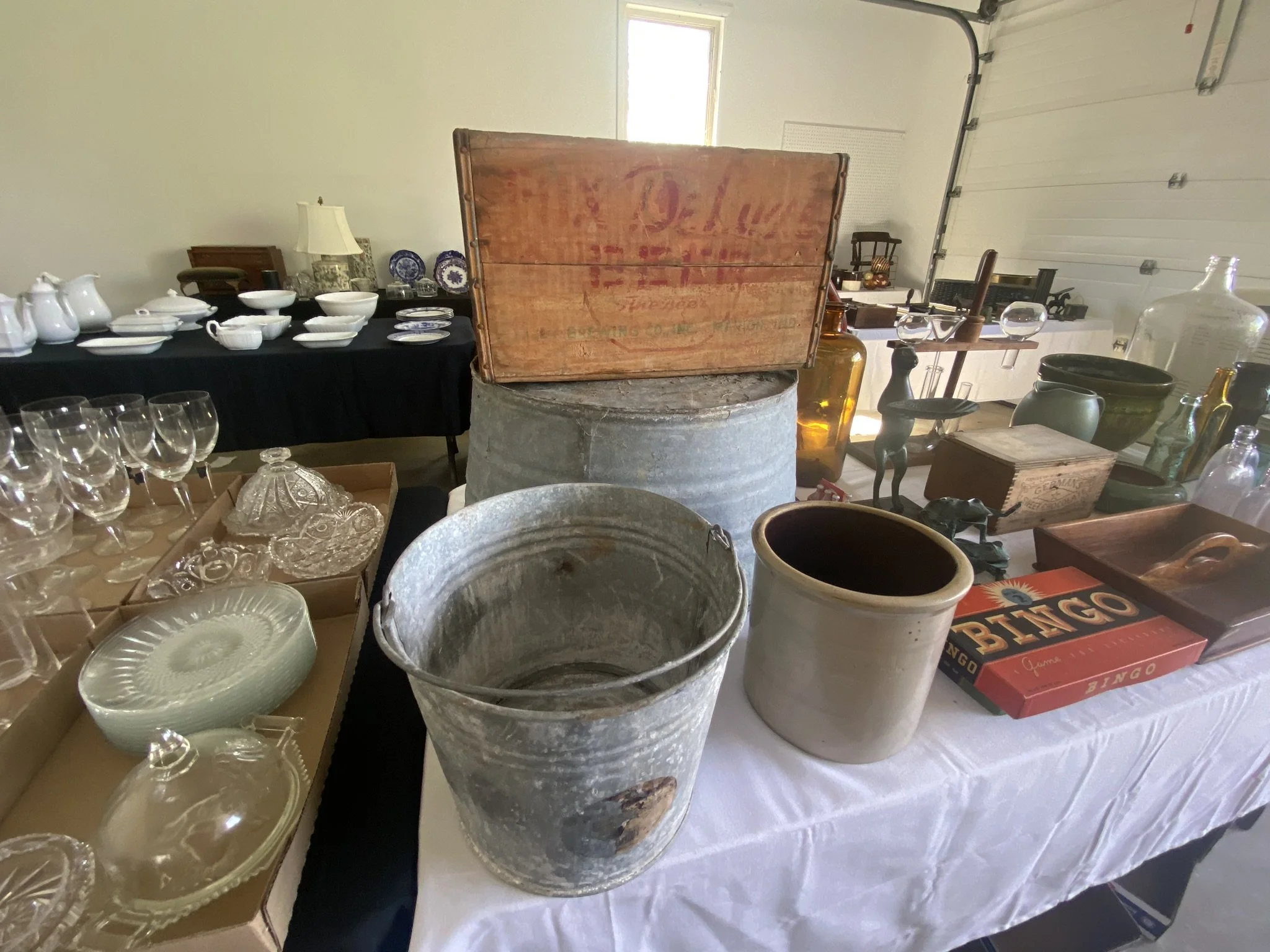 ANTIQUE FURNITURE: Dry Sink with One Drawer Over Two Drawers; Jelly Cupboard-One Drawer Over Two Door; Spinet Style Desk; Antiqued Etagere’; Victorian Dresser with Marble Insert, Hanky Drawers, and Candle Stands; Eastlake Marble Top Wash Stand with Burl Front; Oak Three Sided Table; Cherry One Drawer Stand with Tapered Legs; Two Drawer Double Drop Leaf Stand with Rope Twist Legs; One Drawer Stand with Turned Legs; Oak Wash Stand; Immigrants Trunk; Two Fiddle Back Rocking Chairs; NCR Swivel Office Chair; Stenciled Youth Rocker; Art Nouveau Copper Flash Coat Rack; Round Oak Coffee Table with Claw Feet; Floor Model Safe-2’Wx22 ½”Dx36”H; Foot Stool with CI Feet; ANTIQUES: Folk Art Checker Board- Stamped 13 ½”Wx19 ¾”; Nine Drawer Spice Cabinet; Brown & Bro’s Brass Pail Bucket; Machinist Type Four Drawer Box; Pair J. Burkill del Morin Smith Day & Son Queen Art Print; White Porcelain 22” Glove Mold; Dept Store Mache’ Eggs; Paper Mache’ Bunny; Silverplate Items; Four Small Crocks; John Ruthven Framed Shawnee Print 2829 of 3000; 2005 Mardi Gras Framed Print 61/200 by Mousie; Framed Oil On Canvas Dog Painting; Chrome Grocery Cart; GLASSWARE: Cut Glass Punch Bowl; Flo Blue Deep Bowl and Plates; Meakin Ironstone Two Casseroles, Two Tea Pots, and Gravy Boat; Gaudy Welch Plate; Weller Vase; Asst, Butter Pats and Display Rack; Three Pedestal Cake Stands; Bohemian Decanter; Eighteen Pieces Pinke Depression Including a Pitcher and Tumbler Set; Thousand Eyes Pedestal Cake Stand; Two Glass Baskets; MODERN FURNITURE-HOUSEHOLD: Clean Cream Colored Three Piece Living Room Suit-Includes Three Cushion Couch, Chair, and Foot Stool; Soft White Three Cushion Couch; Overstuffed Chair; Newer Lift Chair; Inlaid Dining Table 4’x8’ Which Includes Two Leaves and Four Chairs; Dining Table with Three Leaves - Seats Ten to Twelve; Upright Computer Station 52”WX78”H; Pair of Glass Top Aluminum Cast Patio Tables; Drive Silver Sport II Wheel Chair; Older Kelvinator Refrigerator; Panasonic Flat Screen TV; Emeril Lagasse Toaster Oven; Metal Two Door Storage Cabinet; Ten Folding Chairs; Nesco 18 Qt. Roaster Oven; Mirro Pressure Cooker; Pots and Pans; Asst. CD’s; Antique Reference Material; SPECIAL MENTION: Pride Legend Three Wheel Mobility Scooter; Whirlpool Wall Oven Used Three Months; TRACTOR-RIDING MOWER-THREE PT. TILLER-LAWN AND GARDEN: Kubota B7800 HST 4WD Compact Diesel Tractor with LA401 Loader, Power Steering, and 781 Hours; John Deere 425 All Wheel Steer Riding Mower-54” Deck, 20 HP Engine, 982 Hours; Bush Hog Three Pt. 5’ Tiller; TRAILER-GOLF CART-TOW BAR: Tandem Axle 6’ 6” x 16’ with 2’ Dovetail Trailer with Split Fold Down Ramp; EZ Go Electric Golf Cart; Roadmaster Stowmaster 5000 Tow Bar; TOOL RELATED-LAWN and GARDEN: Clarke 48” Box and Pan Metal Brake; Lincoln AC/DC Arc Welder; Craftsman 10” Compound Mitre Saw; Craftsman Table Saw; Craftsman 7.8 HP 4200 Watt Generator; Buffalo Bench Drill Press; Performance Tool 6” Bench Grinder with Work Lights; Porter Cable Cut Off Saw; Chicago 7” Angle Grinder; Bauer Orbital Jig Saw; New Bayer Retractable Cordless Hose Reel; Skilsaw Circular Saw; Milwaukee Sawzall; Chicago ½” Electric Impact Wrench; Craftsman 18 Guage Pneumatic Brad Nailer; Acetylene Torch and Tank; Craftsman 5 HP, 22” Snowblower; Huskee Pull Type 25 gal. Sprayer; John Deere Pull Type BSF 35 Gal. Spreader; Wilton Vise; Stanley; Bedrock 607 Plane; Vise Grips; Craftsman and Evercraft Sockets Up to 1 ½”; Craftsman Screwdriver; Snap Ring Pliers; Four Quick Grip Bar Clamps; Hand Tools; Two Work Mates; Wheelbarrow; Two Come Alongs; Four Military Style Gas Cans; L&G Tools; Rods and Reels; TERMS: CASH OR PRE-APPROVED CHECK.