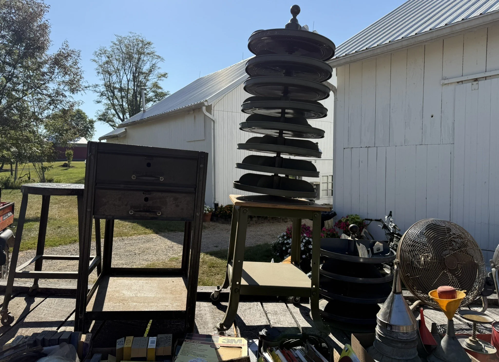 ANTIQUE FURNITURE AND CHERRY FURNITURE: Cherry Four Pane Corner Cupboard; Willett Cherry Furniture Including a Two Corner Cupboards, Two Drawer and Three Drawer Night Stands; Cherry 54” Pedestal Table; Set of Six Windsor Style Dining Chairs; Cherry Three Drawer Over Two Door Server; Cherry Mirror with Drawer Base; Walnut Two Door Cabinet; Oak Deacon’s Bench; Pine One Door Stand; Unique Oak Spindle Back Rocking Chair; Two 1920’s Two Mid Century Loom Type Patio Furniture; WI Spring Chair; Staleys Feeds Chicken Feeder Stand; MODERN FURNITURE: Oak Bookcase with Lead Glass Doors-24”x53”H; Frigidaire Smudge Proof Upright Freezer; Overstuffed Furniture; WI Round Patio Table and Fiver Chairs; VINTAGE STEREO EQUIPMENT-TELESCOPE: Dual 1219 Turntable; Pioneer; Pioneer XS 9000 Stereo Receiver; Two KHM Speakers; Orion Skyquest XT6 Dobsonian Telescope; ANTIQUES: DRGM Grandfather Clock-Barden Gong, 21”x82”H Ridgeway Key Wind Eight Day Clock; Birge, Mallory & Co. Eight Day Clock; Lead Glass Double Chain Pull 23” Lamp; Parke Davis Co. Chemists Wooden Box; Gerstner 13 Drawer Tool Box and Three Other Gerstner Tool Boxes; Two CI Urns-23”Wx30”H; Steel Wheel Wheelbarrow; Steel Implement Wheels; Seven Rotary Hoe Wheels; Steel Pullies; French Bauer Dairy Products Portable Sign; Road Signs; Old Cans; Federal Kilgore No. 1 Cap Gun; Two CI Implement Seats; Steelyard Balance Scale; Copper Wash Boiler; Gold Rose Mirror 24”Wx46”H; Emerson and Hunter Century Fans; Fenton-Four Golden Stripe Vases, Sand Petals on Aquamarine Opalescent Pedestal Plate, and HP Basket; Camp Perry Plate; Cobalt Glass; Pressed Glass; China Figurines; Two 1920s Angled Steel Three Legged Stool/Step Ladder; S.P. Co Railroad Conductors Step; Five Crock Jugs 1-5 Gallon; Ironstone Tureens; 1996 Pedal Power Olympic Pin Sets; TELEPHONE COLLECTIBLES: Bell and Red Telephone Outside Phone Booths-Aluminum and Glass; Red Oval Egg Phone Booth; Aluminum Pedestal phone Booth; Oak Phone Cabinet; Oak Wall Phone; Western Electric Three Slot Coin Phone; Western Electric Desk Phone; Western Electric Candlestick Phone; Two Yard Art Parking Meters; TAIT ELECTRIC GENERATING PLANT SPOTLIGHT: GE Industrial Spotlight with 15” Lense a Significant Part of Dayton History; TRACTOR-IMPLEMENTS: 2004 New Holland TN 65 Diesel Tractor with Woods 1020 Loader-Synchro Command, Quick Attach, 808 Hours, Clean; Bush Hog Model 3008 Three Pt. 8’ Rotary Mower- Seals on One Spindle Leak; Quick Attach Pallet Forks; Virnig U-Blade-Rock and Stump Implement; Ferguson Three Pt. 2-12 Plow; Ferguson Three pt 8’ Disc with Soil Slicer; Woods GB72 Three Pt. 72” Box Blade; Rhino Three Pt. 8’ Blade; Three Pt. Platform-54”x36”; Three Pt. Quick Hitch; RIDING MOWER-LAWN and GARDEN-KAYAKS: Kubota F2690 Front Mount Diesel 60” Mower-26HP, and 779 Hours; Utility Trailer-Wishbone Axle; Troybilt Horse Tiller; Stihl RB 600 Gas Power Washer; Stihl MS271 Chain Saw; Stihl FS 250 Weed Eater; Countyline 25 gal. Spot Sprayer System; Kestrel 120 Sit In Kayak; Sundolphin Marquett 10 Sit On Top Kayak; Original Garden Way Two Wheel Cart; Lifetime Fold Out Picnic Table; Concrete Squirrel Based Bench; Large 7’x9’ Garden Trellis; Lumber-Eight 12’ 2x4s, 1”x4” and 1”x6” Boards; VINTAGE POWER EQUIPMENT-POWER TOOLS-HAND TOOLS-TWO ANVILS and MORE!: Jet Model EHV-80CS Horizontal/Vertical Edge Sander; 1947 Delta 14” Wood/Metal Band Saw-2020 Rebuilt Motor; Delta Rockwell Model 22-101 13” Thickness Planer-Disassembles for Cleaning and Paint, Needs Oil and Fine Tuned, Rebuilt Single Phase 220 3 HP Three Phase Motor; Delta Drill Press-2018 Rebuilt Motor; 1967 Delta Wood Cutting Band Saw; 1957 Delta and Two Rockwell 12”x36” and Wood Lathes; Two Delta 12” Disc Sanders; Two Stanley and Three Baldor Pedestal Grinders; Rockwell Belt Sander; Wells Model 5M Metal Band Saw; Two Rockwell 36” Wood Lathes; Hay Budden 133 lb. Anvil on Log; ACME Anvil; Two Blackhawk Vintage 4 Ton Floor Jacks with Lights and Two Others; Two Greenerd N0.3 Arbor Presses; Three Welding/Fabricating Tables-35”x42”, 24”x28”, 31”x33”; Singer Professional Sewing Machine; Three Wilton HD Vises; Machinery Motors; Like New US General Two Eight Drawer Stack on Eight Drawer Tool Boxes on Roll Around Cart-Selling as a Unit; Lincoln AC/DC Arc Welder; Harris Gas Welding, Cutting, Brazing, and Heating Torch; Schumacher Roll Around Battery Charger; Dewalt D28700 14” Chop Saw; Heinrich Grip-Master and AMF Float Lock Vise; Three Industrial Floor Model Circulating Fans; Craftsman Sockets and Ratchets; GTD No. 3120 O.K. Jr. Screw Plate Tap and Die Set; Twenty Pipe Clamps; Twenty Bar Clamps; Rotating Parts Bins; Long Handled Tools; Log Chains; Double Chain Hoist; Refrigerator Dolly: Werner 28’ Aluminum Extension Ladder and 6’ and 10’ Step Ladders; Industrial Fifth Wheel Steer Cart; Index and Storage Cabinets; Nice Asst. of Hand and Power Tools; TERMS: CASH OR PRE-APPROVED CHECK. LUNCH by Res-Que Dogs. Call 937-687-1919 for Further Information.