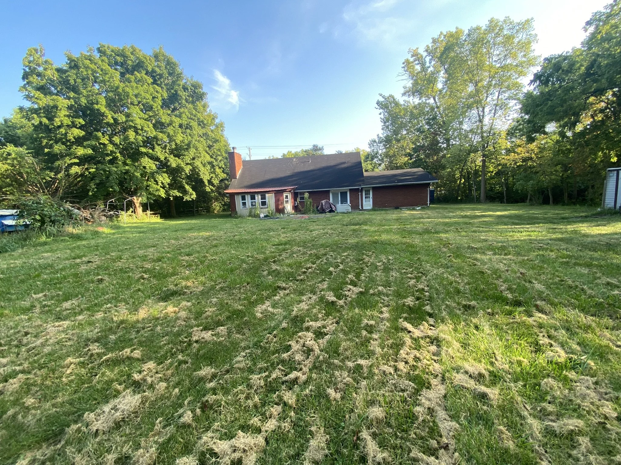 Country Brick Cape Cod… Living Room, Eat-In Kitchen with Bar, Family Room with Fireplace, Three Bedrooms, Two Full Baths, Small Pole Barn, and a 1 Acre Lot. This Home is Ideal for Two Parties to Share Living Areas. Needs Work.