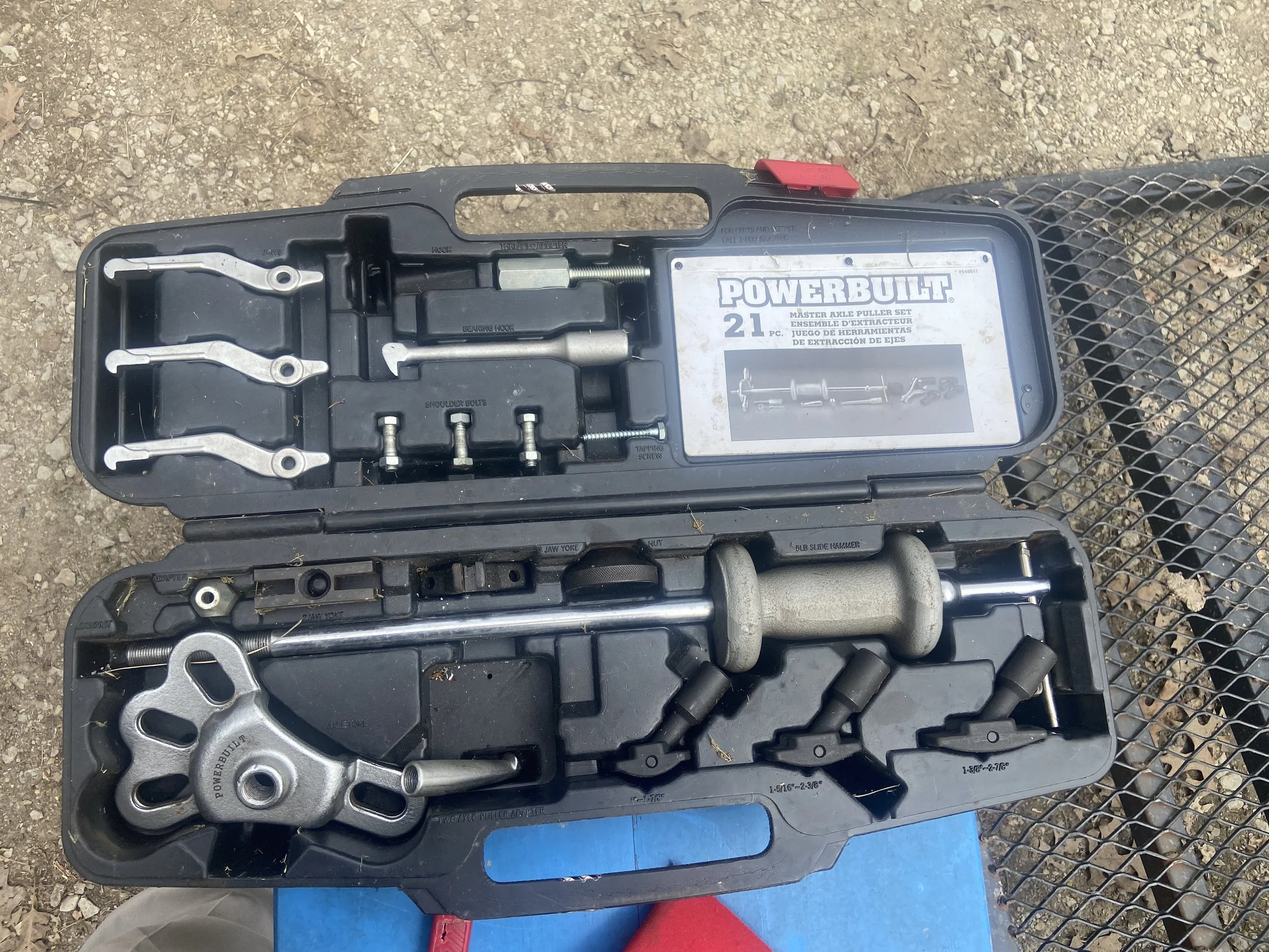 TOOLS: Campbell Hausfeld 65 Gal., 220 V, Single Stage Air Compressor with New Extra Pump; Chicago Electric 90 Amp Flux Wire Welder; Mack Cummins 12 Speed Drill Press; Dynacharge 140 amp Roll Around Battery Charger; Larin 2 Ton Foldable Engine Hoist; Dewalt 20v Max Cordless Grease Gun; Max Air 24” Direct Drive Fan; Pneumatic 3” Cut Off Tool, Die Grinder, ½” Impact Wrench, Pittsburg 3 Ton Floor Jack; Big Red 20 Ton Hydraulic Bottle Jack; Pittsburg 20 Ton Air/Hydraulic Bottle Jacks; Pair Pittsburg 3 Ton Jack Stands; Craftsman 42” Creeper; Powerbuilt Twenty One Piece Master Axle Puller Set; Two Wheel Dolly; Hand Tamp 10”x10”; Ten Tubes of Multi Purpose Grease;